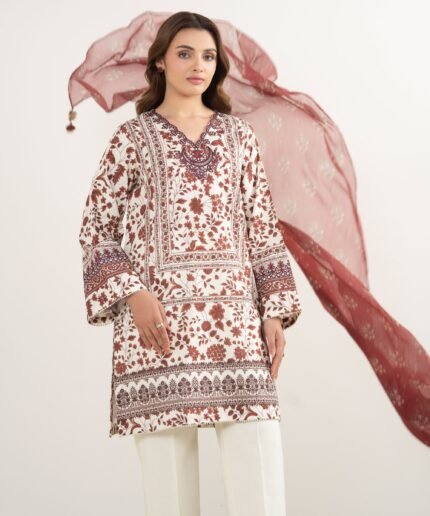 Lawn Embroidered Red 3 Piece Suit