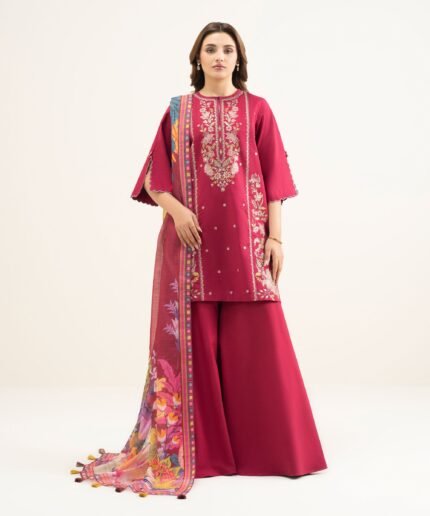Lawn Pink Embroidered 3 Piece Suit