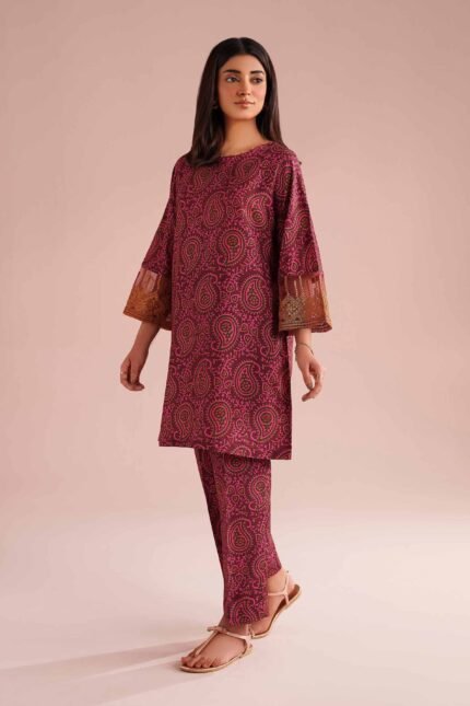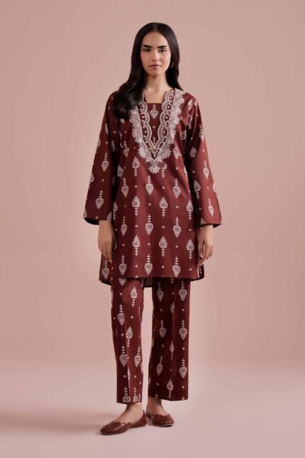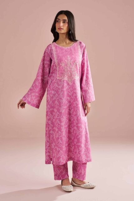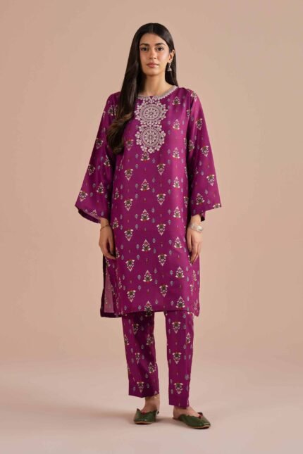 2 Piece – Printed Embroidered Suit – PE26-214