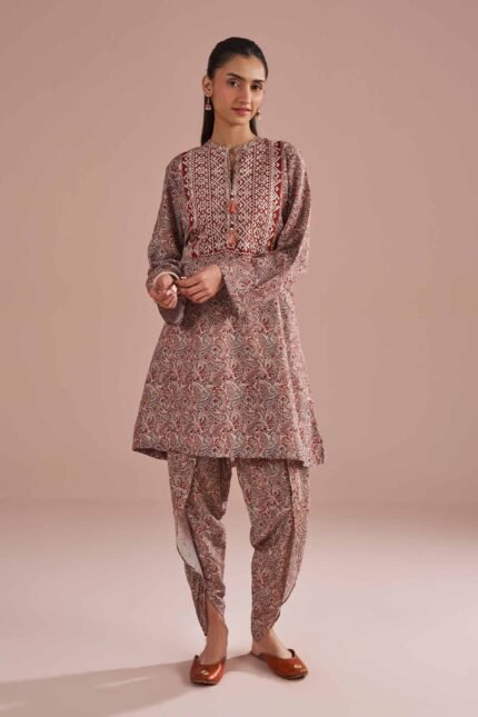 2 Piece – Printed Embroidered Suit – PE26-251