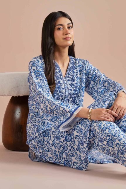 2 Piece – Printed Embroidered Suit – PE26-348