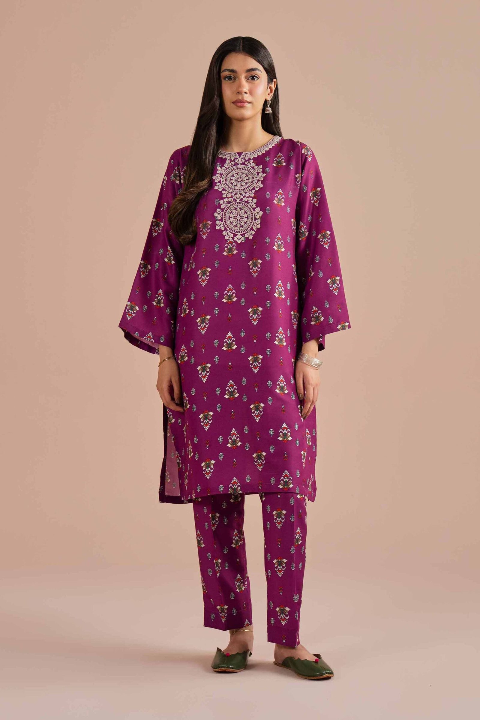 2 Piece – Printed Embroidered Suit – PE26-206
