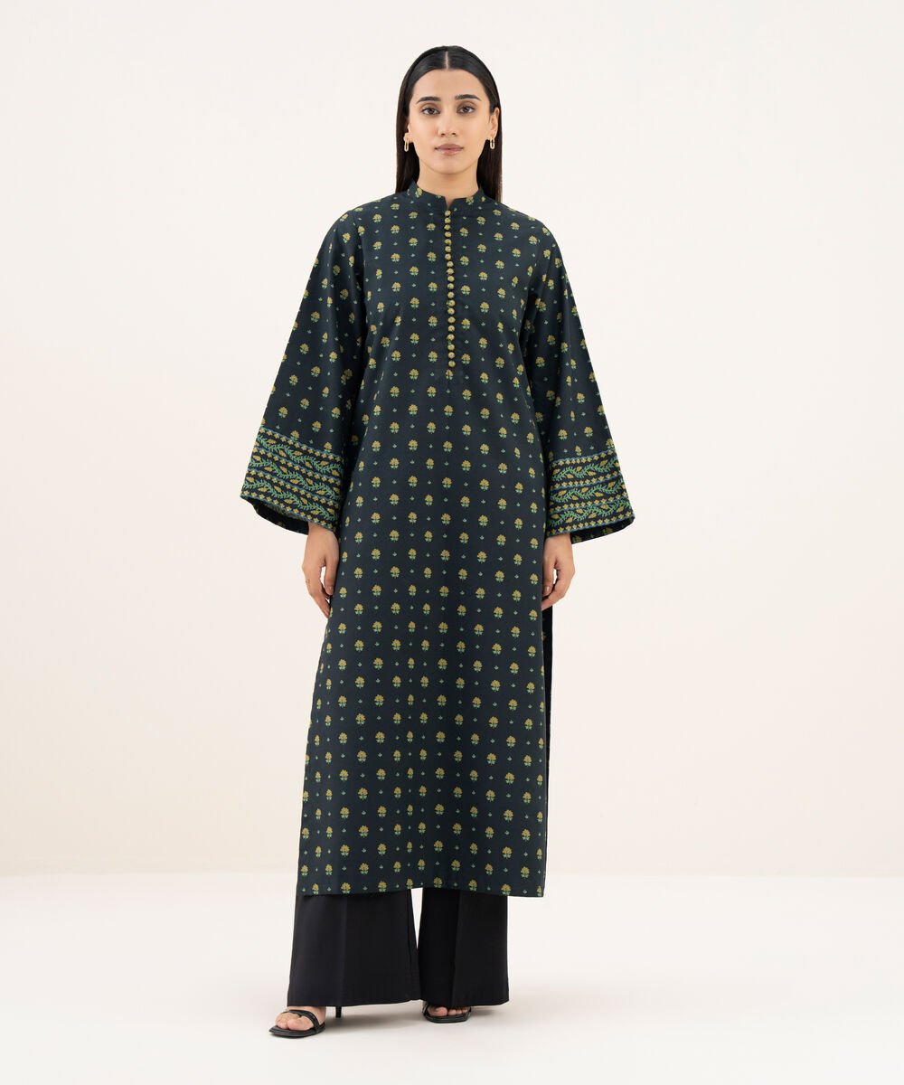 Khaddar Printed Green 3 Piece Suit