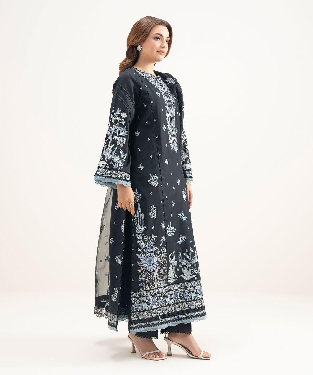 3 Piece – Embroidered Cotton Satin Suit – Cotton Embroidered