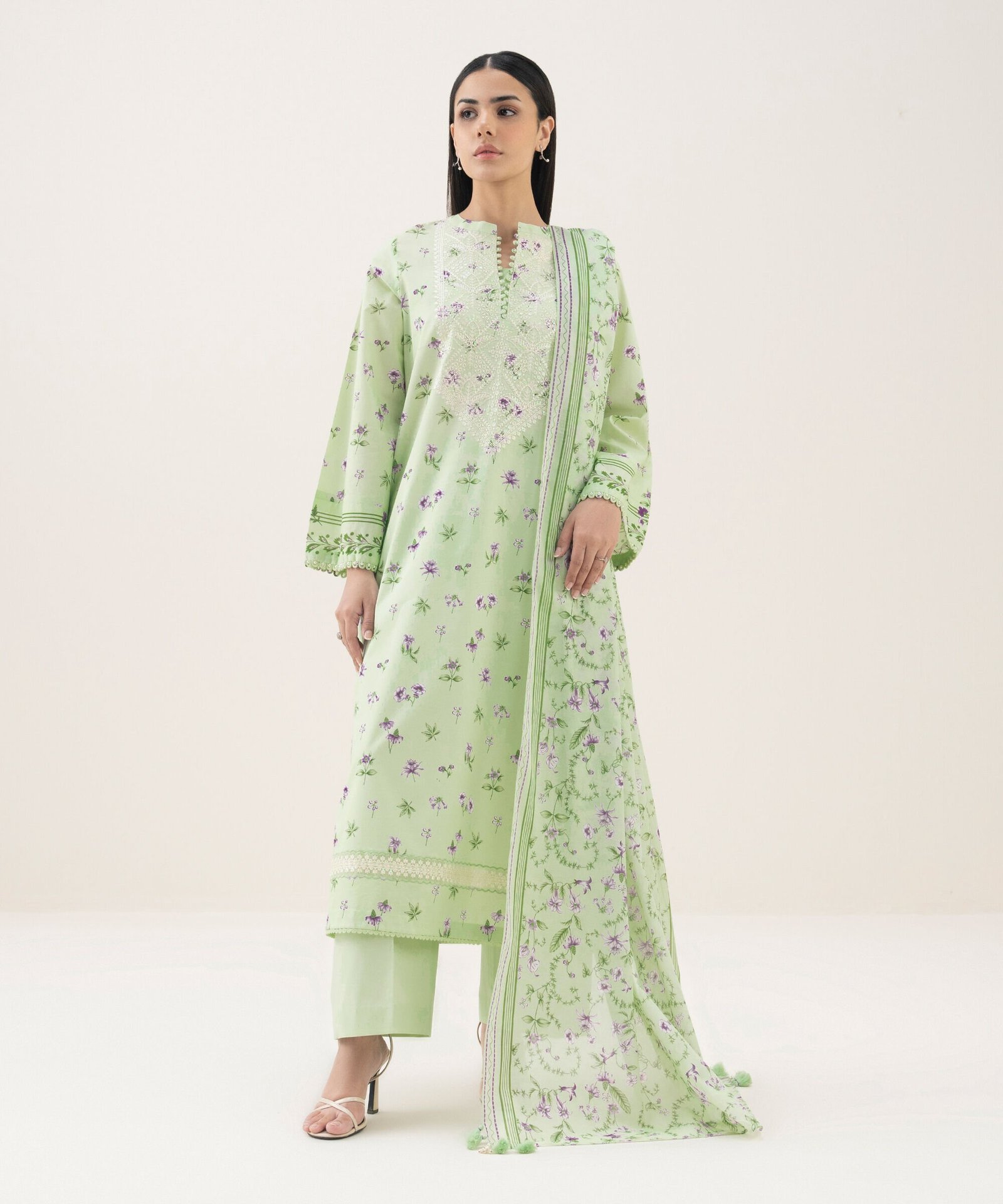 Lawn Embroidered Green 3 Piece Suit