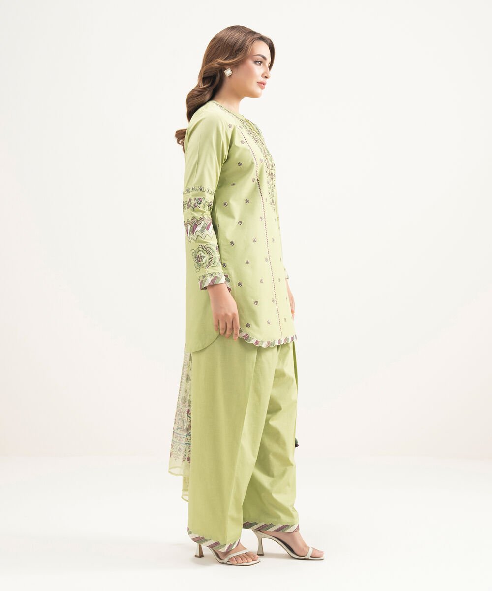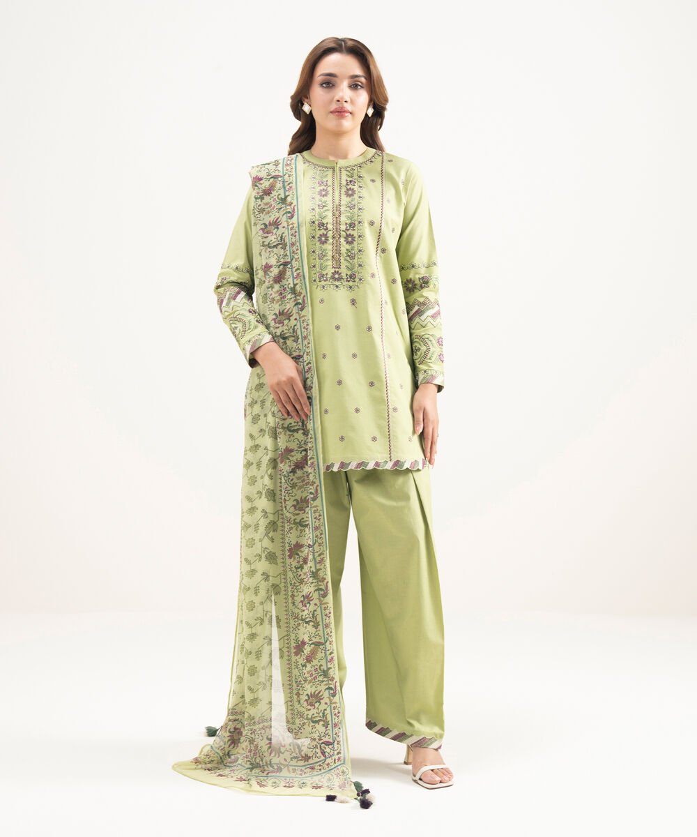 Lawn Embroidered Green 3 Piece Suit