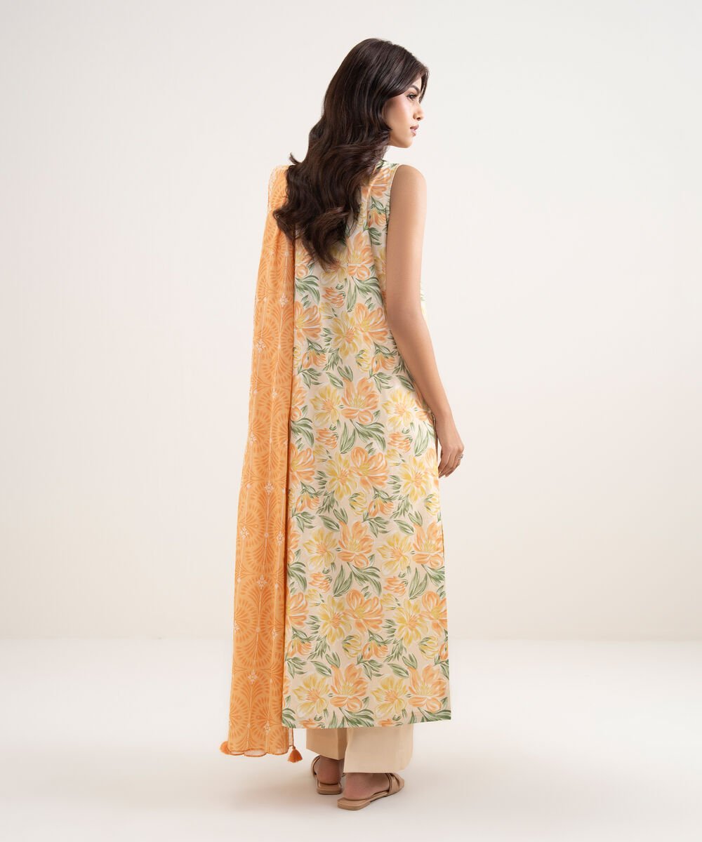Lawn Orange Printed 3 Piece Suit