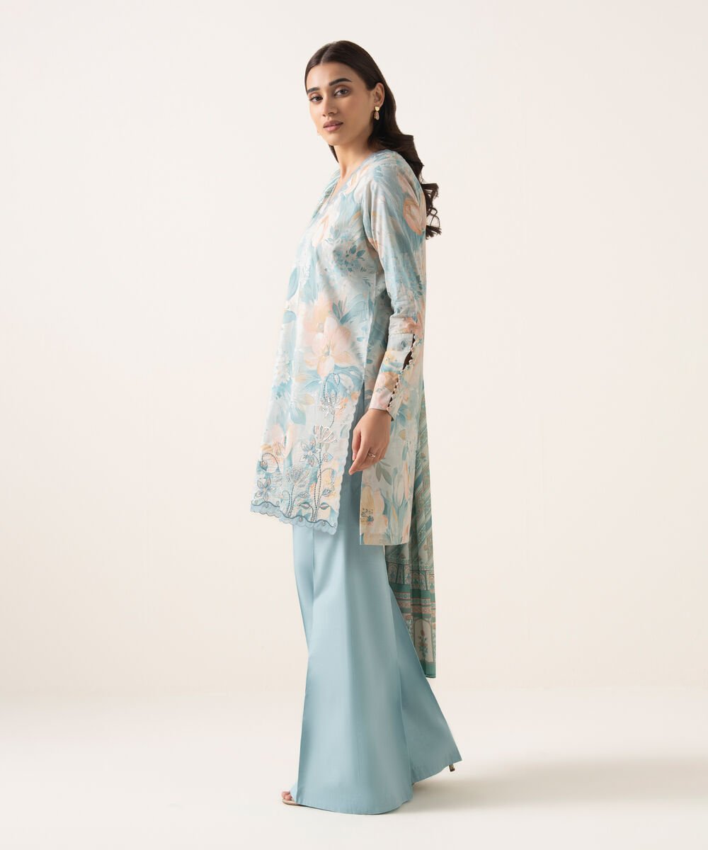 Lawn Embroidered Blue 3 Piece Suit